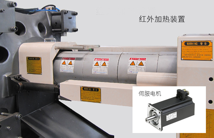 伺服驅動器在鎖模保壓冷卻等階段能輸出最大壓力但保持速度接近零速,因而功率消耗小,更節(jié)能 料筒采用納米遠紅外高效節(jié)能加熱裝置,改善了傳統(tǒng)加熱圈電熱轉換效率低、熱傳導率低、表面溫度高“兩低一高”缺點,比傳統(tǒng)加熱圈節(jié)能30%-40%